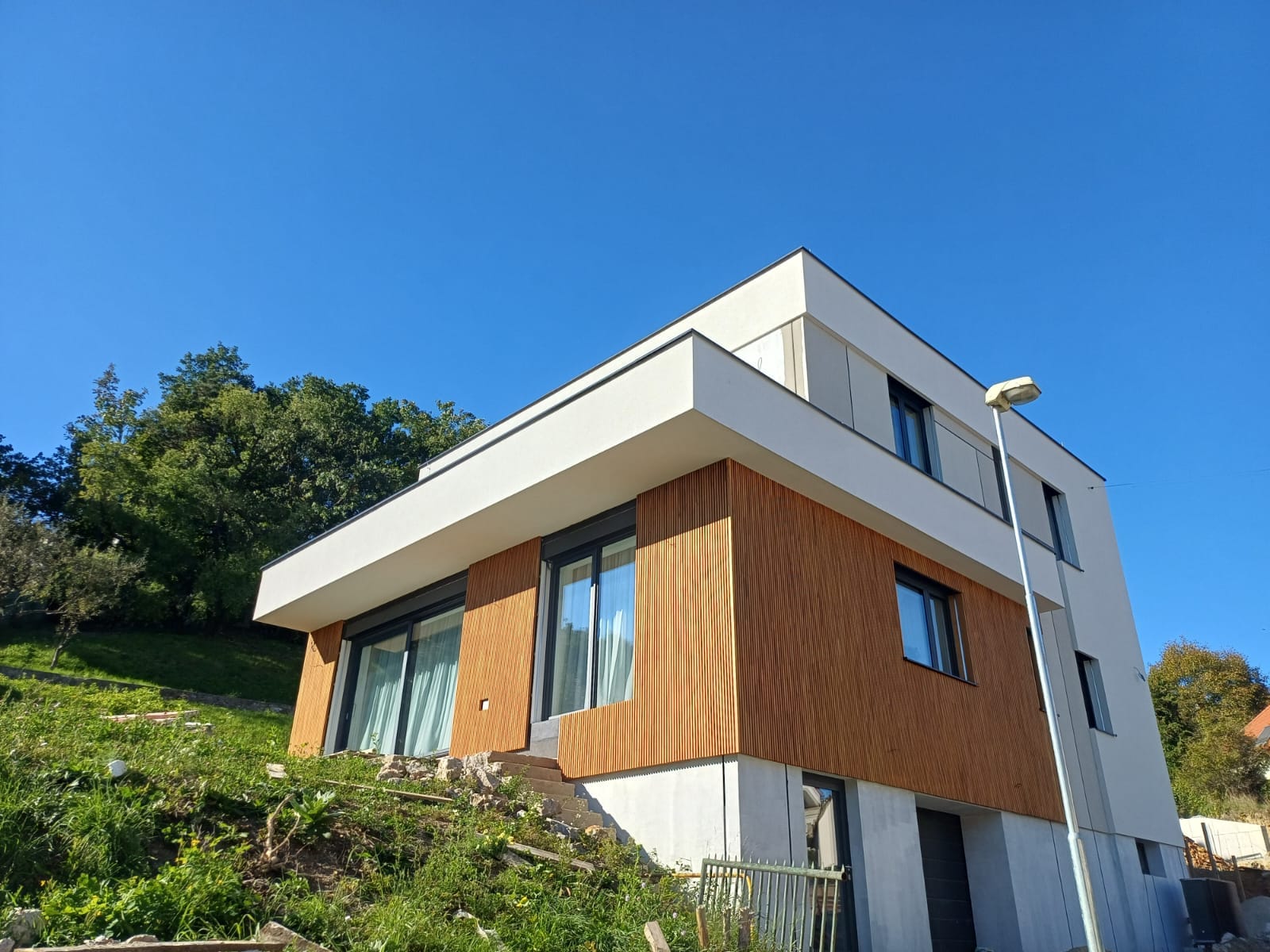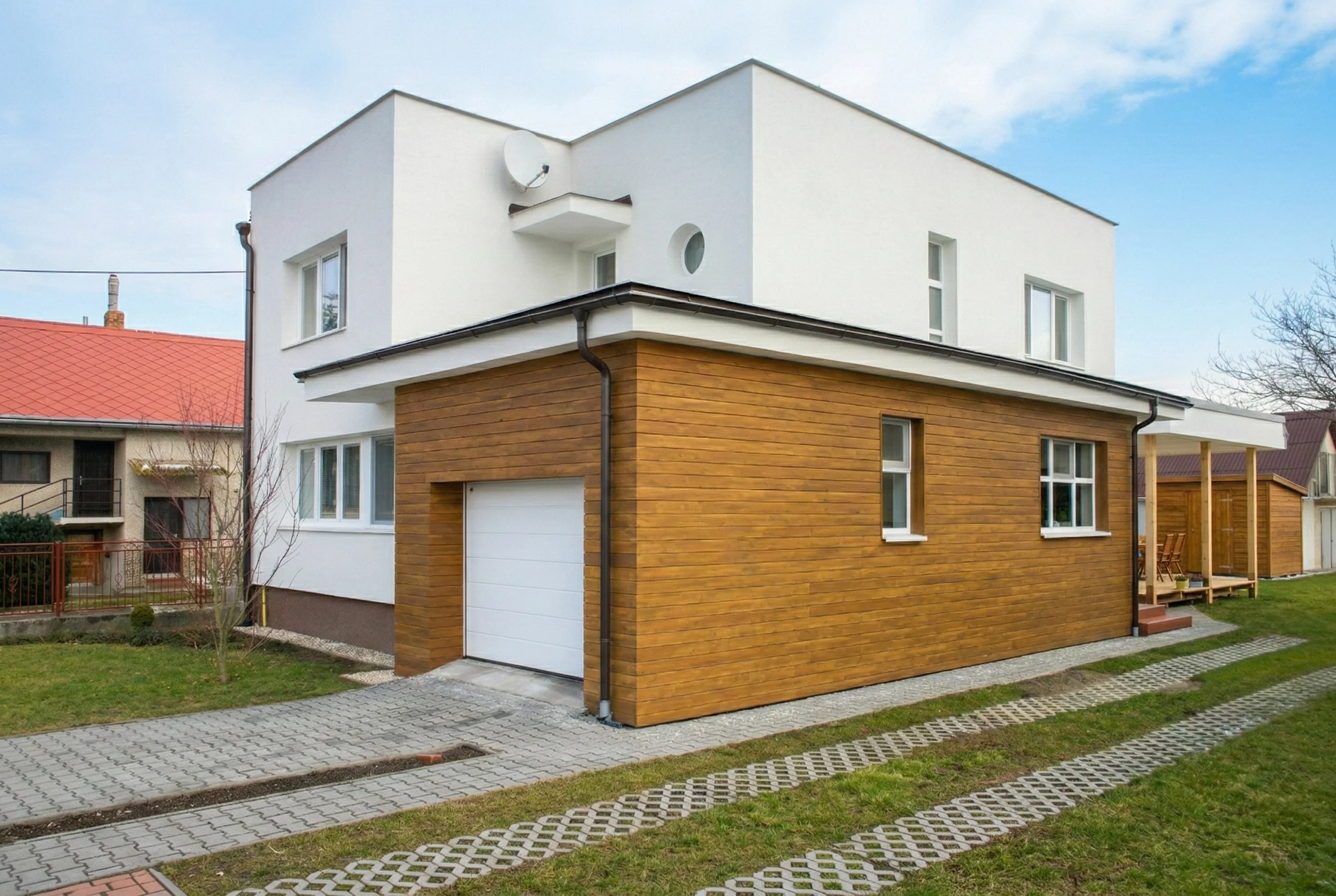 Moderná prírodná fasáda z agátu